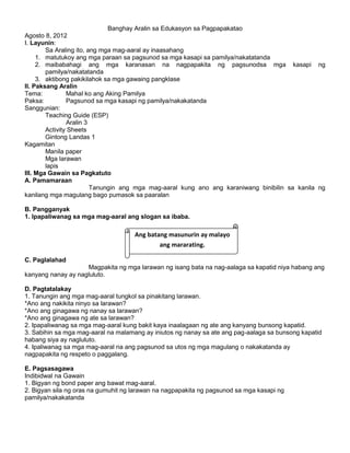 Banghay Aralin Sa Pagtuturo Ng Edukasyon Sa Pagkakatao 10 Nikka Pdf